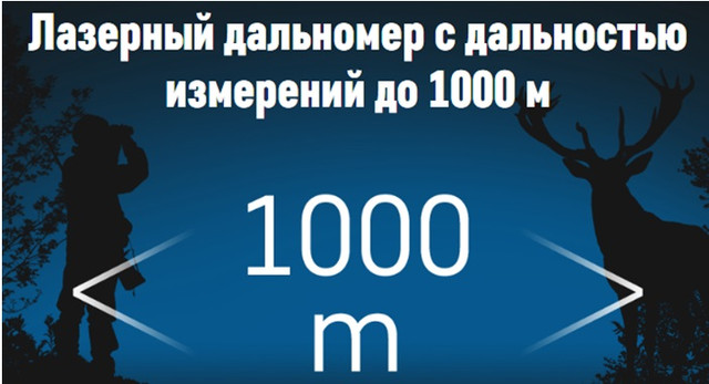 Лазерний далекомір з дистанцією вимірювання до 1000 м значно розширив функціонал. Пристрій працює на частотах 905 нм, які потрапляють у невидимий для людського зору діапазон випромінювання. Похибка вимірювань 1 метр. Знання точної дистанції до цілі є визначальним фактором для цілого ряду завдань.